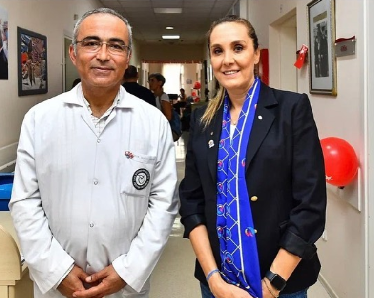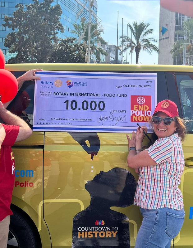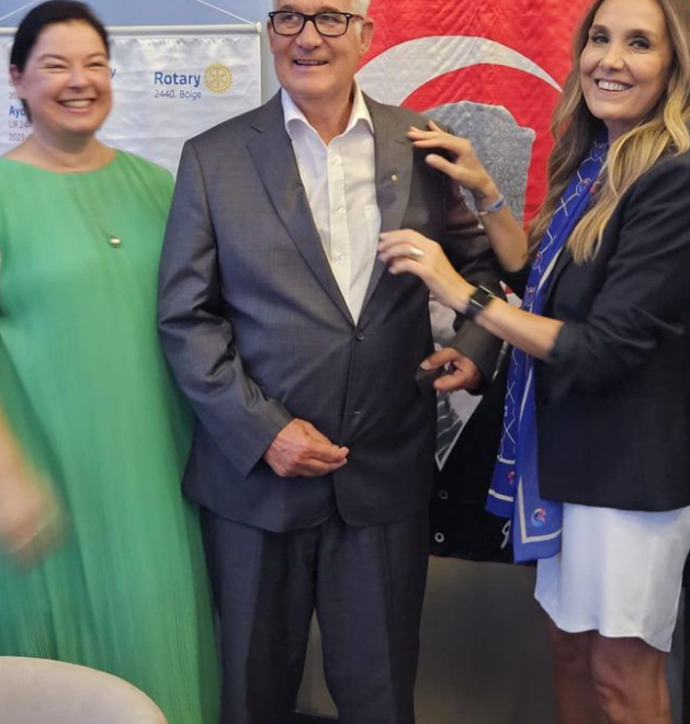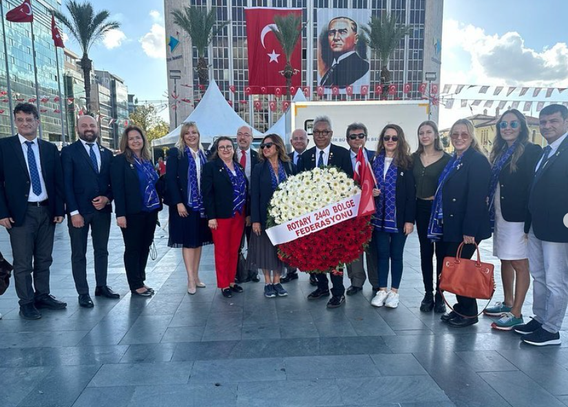 Cumhuriyet Meydanın’da yapılan törende 2440.Bölge Federasyon başkanı Ayda Özeren’den 10.000 USD’lik bağışı aldı.