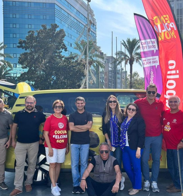 Kendisi de 10 aylıkken çocuk felci geçiren Ürdün asıllı Alman Bashar Asfour, “Çocuk Felcine Son” diyerek çıktığı 54 günlük yolculuğun 27. gününde, 6 ülkeden geçtikten sonra Sakız Adası’ndan feribotla Çeşme’ye ve oradan İzmir’e geldi.