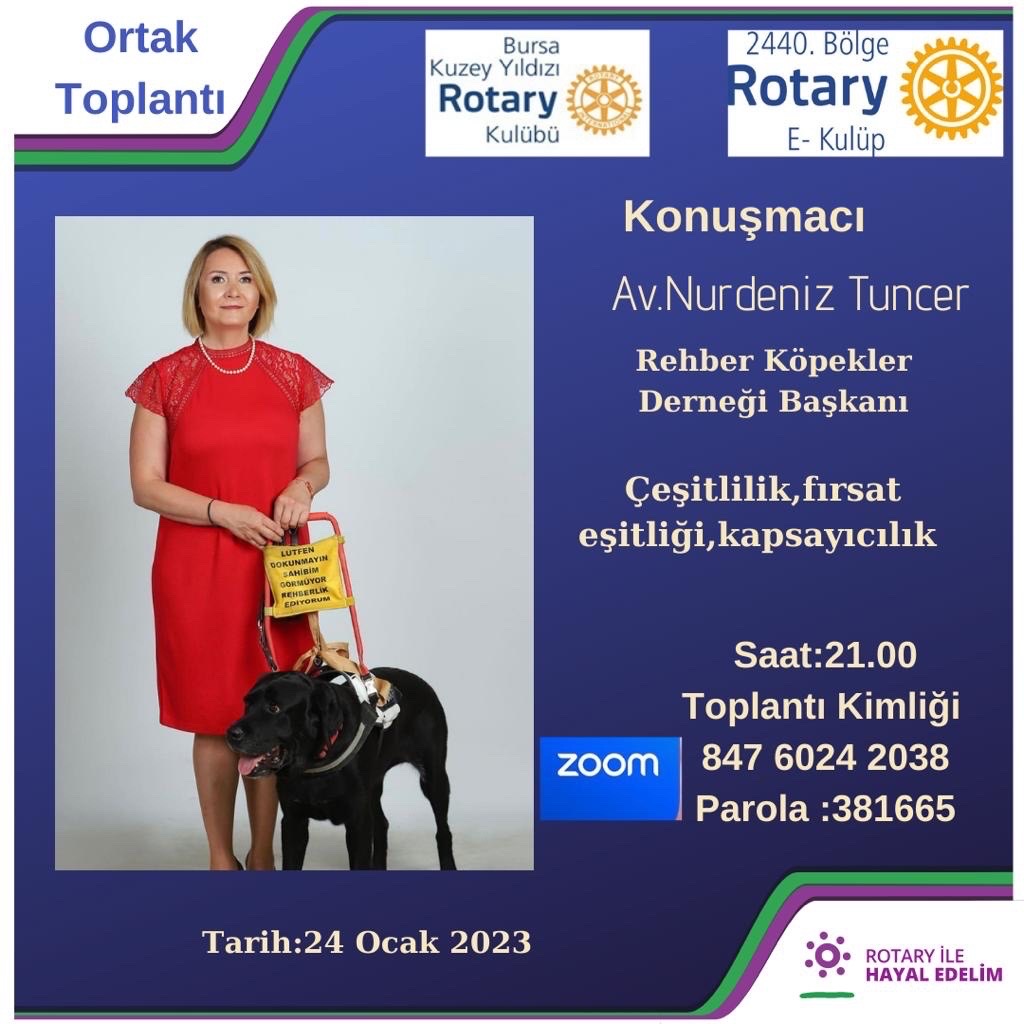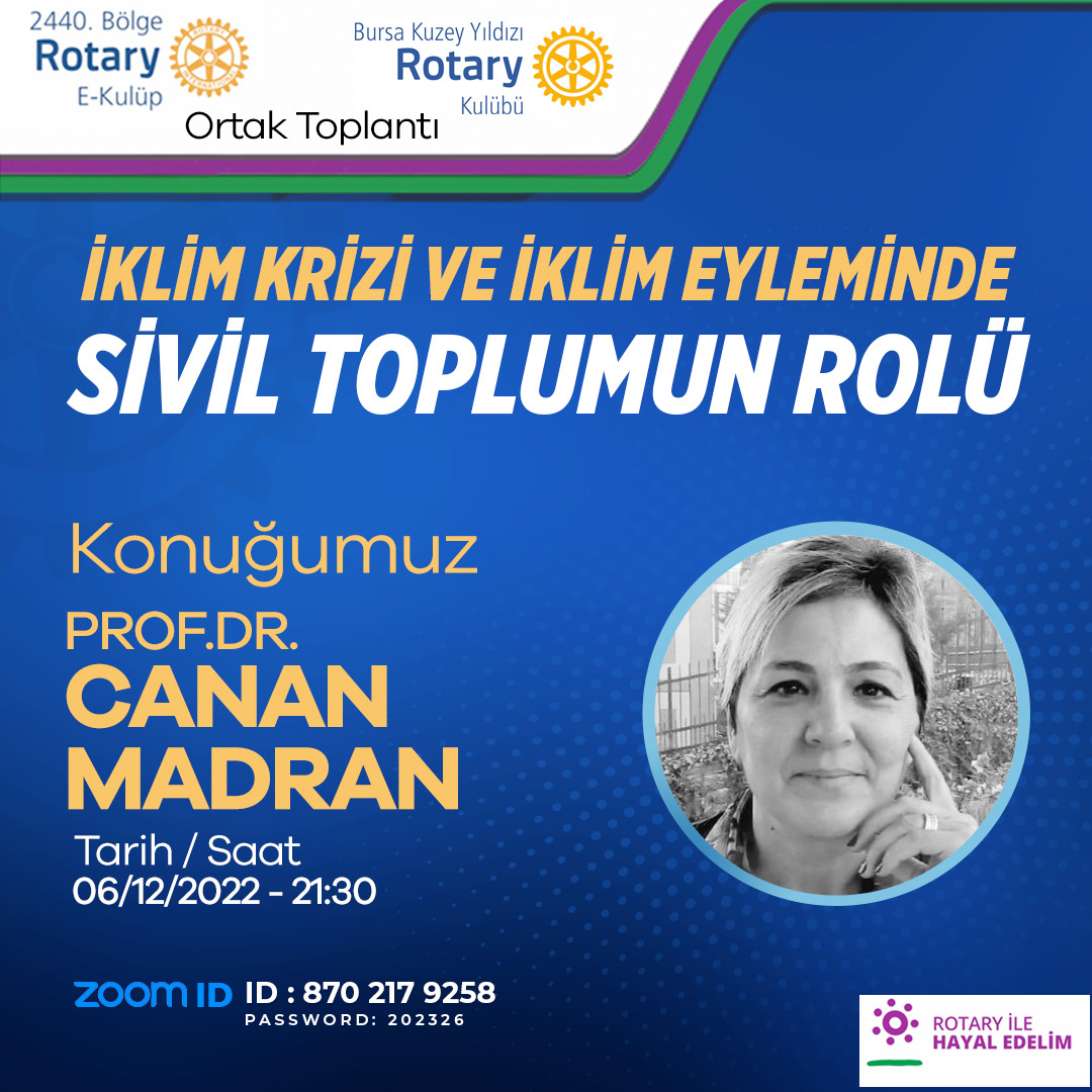 06 Aralık 2022 salı saat 21:30’daBursa Kuzey Yıldızı Rotary Kulübü ile Zoom ortak toplantımızda;